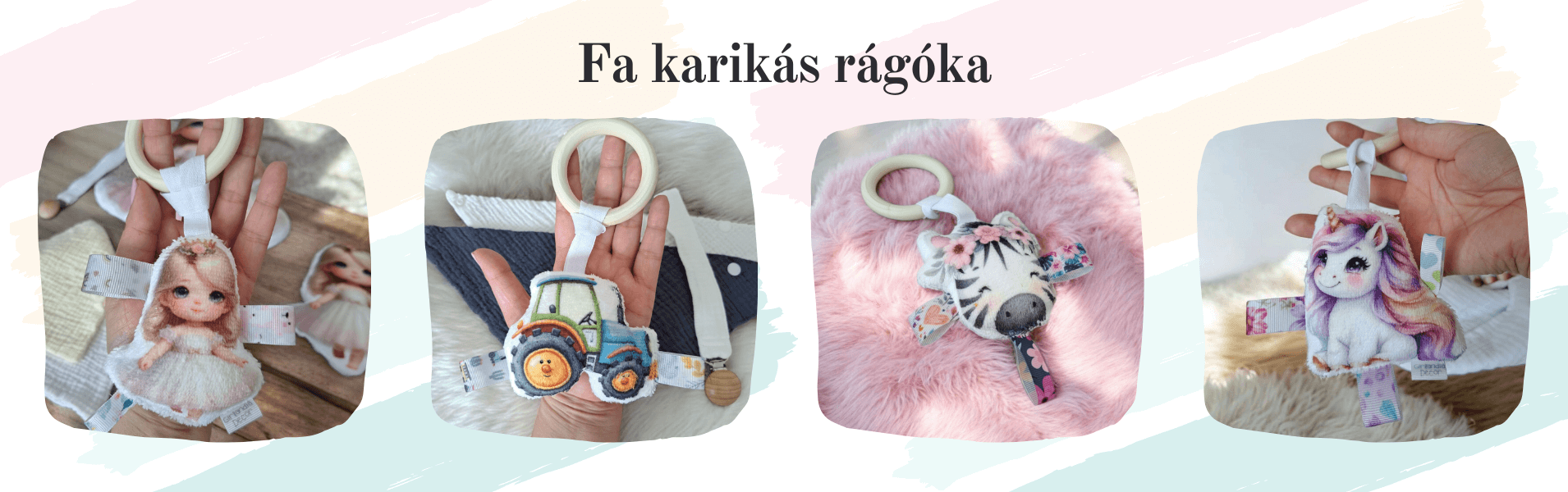 A fa gyűrű gyengéden masszírozza az ínyt, a puha figura pedig kézbe simul. A kis címkék olyan apróságok, amik lekötik a figyelmet, újabb felfedeznivalót jelentenek: matatni, morzsolgatni, húzogatni őket igazi élmény a babának, miközben fejlesztik a tapintást és a kézügyességet is.