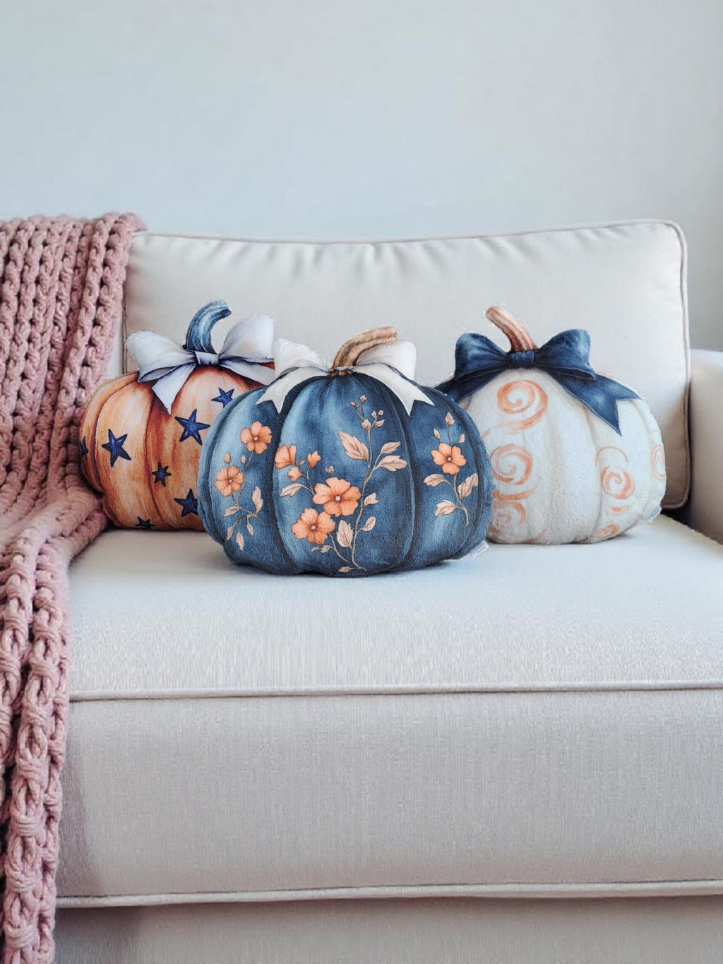 Legyen szó modern, bohém vagy hagyományos stílusról, ez a háromféle mintás őszi tök formapárna minden enteriőrben remekül mutat.